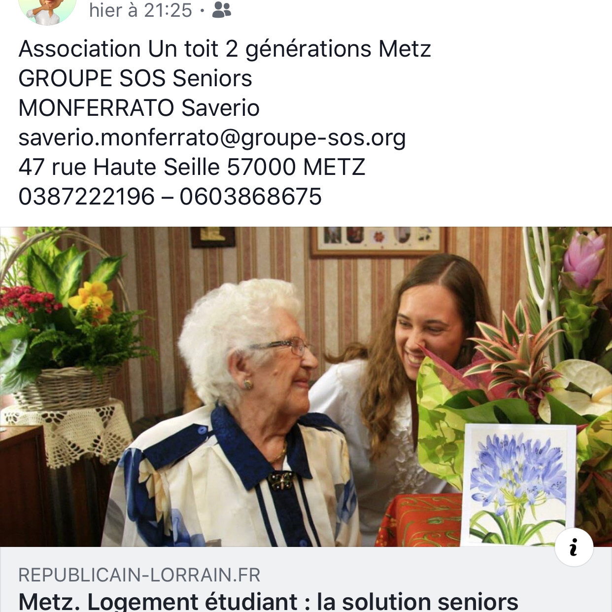 Voici toutes les informations sur le Service de référencement de colocations Un Toit 2 Générations GROUPE SOS Seniors qui ce trouve au 47 Rue Haute Seille, 57000 Metz (57). Sur cette fiche vous trouverez les photos, l'adresse, les horaires d'ouverture, le numero de téléphone et les avis clients.Vous pouvez églement rédiger un avis si vous le souhaitez en bas de page.